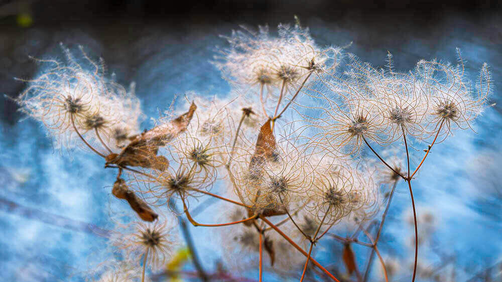 I thought it looked like a cotton ball or wet wool. I also liked the contrast and color tones of the clump. As daylight was quickly fading I decided I’d take a photo of the white clematis pappas for todays photo.